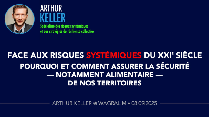 Lors de cette conférence, Arthur Keller décrypte les défis globaux à venir sous un angle systémique et invite à repenser nos réponses collectives. Il démonte les fausses solutions trop souvent mises en avant et propose des stratégies concrètes pour renforcer la résilience des territoires, en particulier sur les enjeux de sécurité alimentaire. Un événement incontournable pour toute entreprise soucieuse d’anticiper les risques et d’assurer la continuité de ses activités.